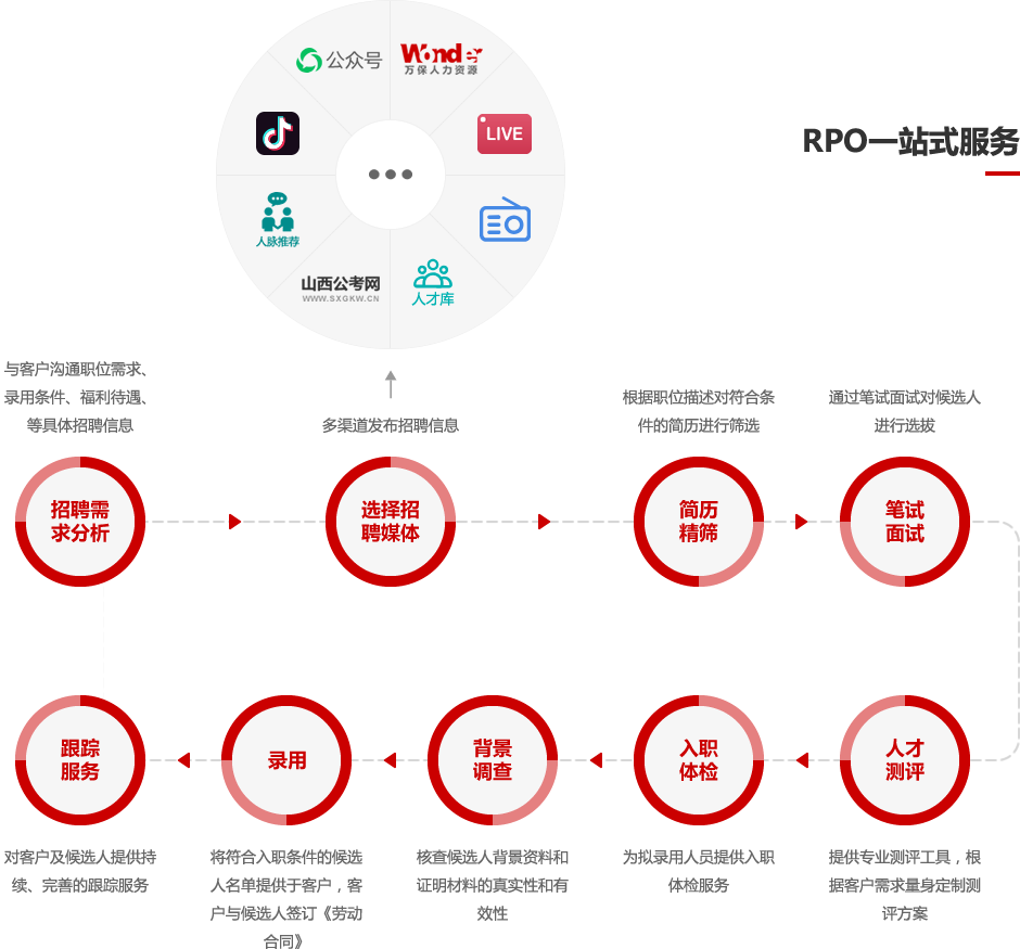 招聘流程外包服務(wù)(RPO)是一種以客戶(hù)為導(dǎo)向,以項(xiàng)目為建制,解決招聘任務(wù)的服務(wù)方案。RPO可以滿(mǎn)足企業(yè)節(jié)約招聘成本、優(yōu)化招聘流程、緩解招聘壓力,保證高質(zhì)量的招聘結(jié)果。